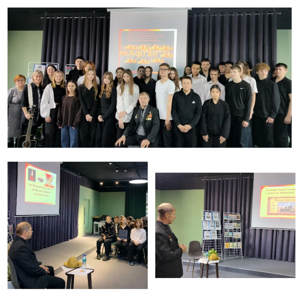 В Нижнеозернинской сельской модельной библиотеке состоялся урок мужества "Пусть мужество Ваше нам будет примером" для учащихся 7 класса МБОУ Нижнеозернинской СОШ. На мероприятие были приглашены: участник войны в Афганистане – Абдрахманов Наиль Салямович, близкие родственники земляков- участников войны в Афганистане и мама участника специальной военной операции. К мероприятию были подготовлены видео и фотоматериалы, в которых представлены кадры, запечатлевшие события Афганской войны. Звучали стихи и песни, посвященные этой дате. Гости рассказали о событиях тех лет. Наиль Салямович поделился своими воспоминаниями о боевых операциях по ликвидации банд формирований на территории Афганистана, рассказал о солдатской дружбе и взаимопомощи. В завершение мероприятия память всех погибших россиян, исполнявших служебный долг за пределами Отечества, почтили минутой молчания.
